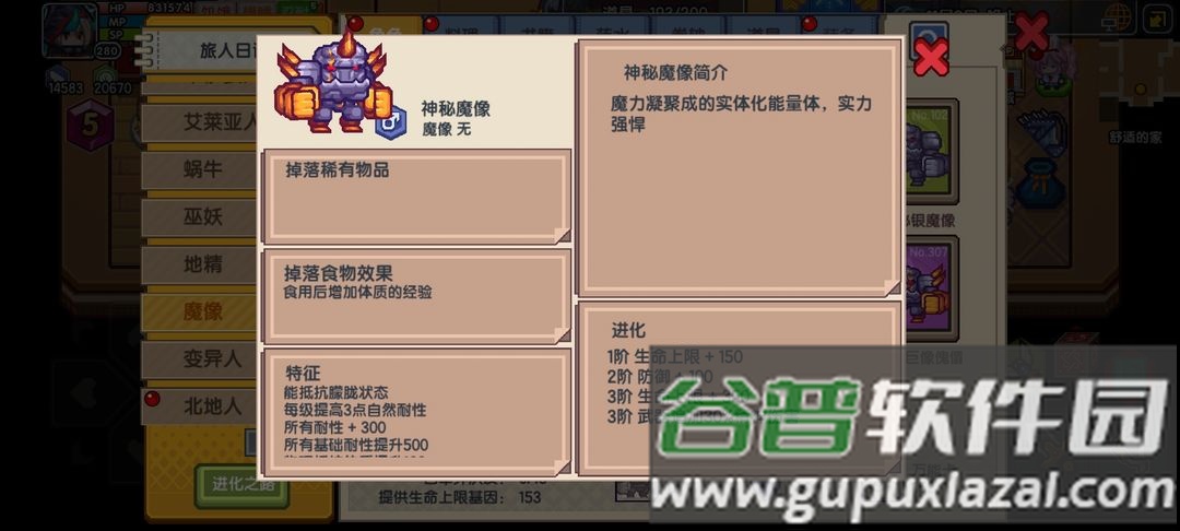 神秘魔像,防御极高,拥有两种各100点的抵抗体质(即对物理与魔法的百分比减伤),近战面板与物理怪相当,击败即可,无需特别关注。