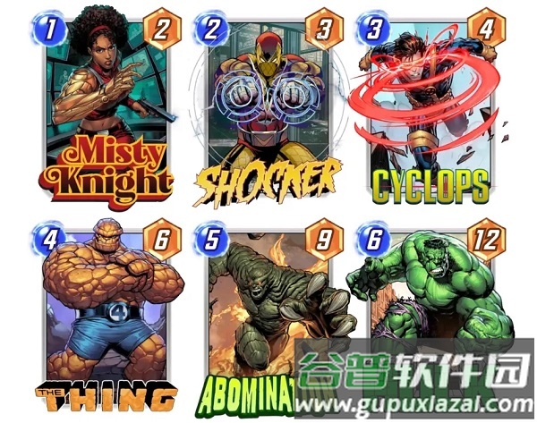 点评:星爵的高费版本,触发效果后可达12攻,相当于6费白板卡的力量。在前期卡池中是一条坚实的5费曲线。但随着卡池扩展,高费卡竞争加剧,纯力量型卡牌的地位有所下降。