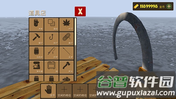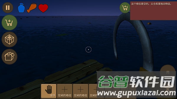 1、资源收集:使用钩子打捞海上散落的木板、塑料、树叶等材料,同时留意食物与淡水的补给,这些物资是生存下去的根基。