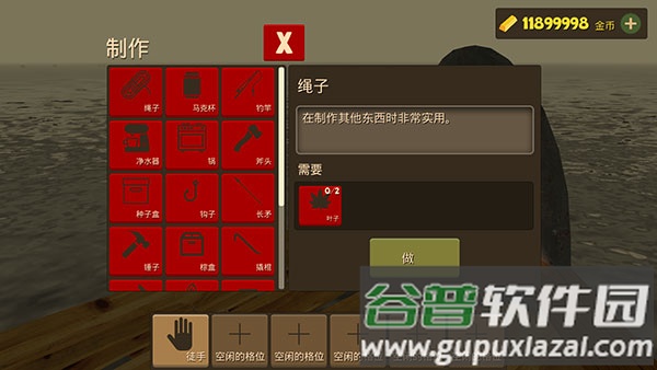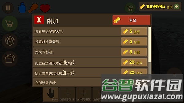 5、解决好饮水与食物烹饪后,再制作锤子并逐步扩建木筏,解锁更多建筑选项;