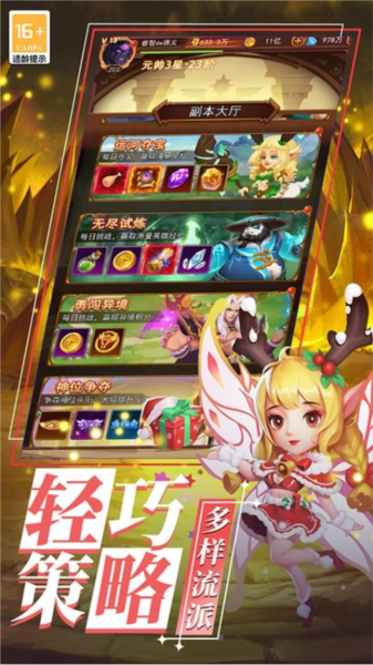 英雄阵容搭配变化无穷,小额度投入亦有逆袭可能;汇集巫妖之王、齐天大圣、凤凰等众多特色明星英雄;开放无尽试炼、跨服争霸与成神之路等多种模式,保证游玩内容常新。