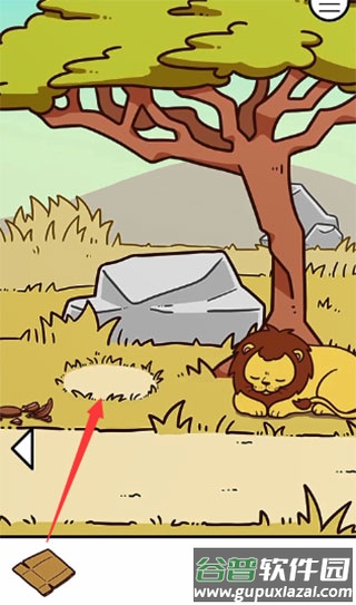 3、玩家要在第二个场景打碎罐子,拿到里面的纸箱。然后回到第一个场景,将纸箱放置在圆形的空地上。狮子会被纸箱吸引并钻进去,从而露出它身下藏着的食物。此时拿走食物吃掉就能过关。
