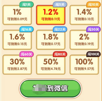 3、通过闯关不断累积红包奖励,并可按比例兑换;闯关越多,最终收益也越高。