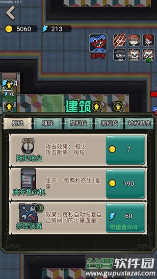 4、持续强化你的炮塔以提升战斗力,不断击退凶猛的鬼怪,守护宿舍安全;