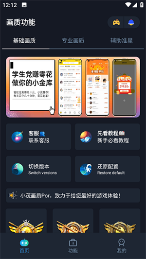 1、画质帧率:低配置手机可一键开启120帧模式;
