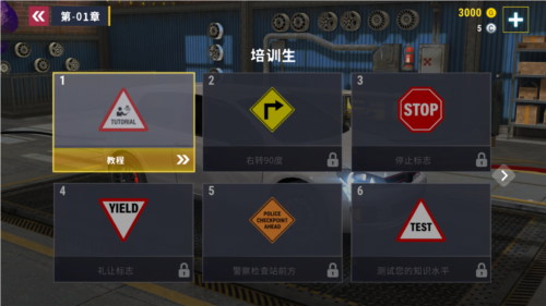 在此模式中认识各类道路标识,学习并遵守交通规则;通过多个难度级别的测试来巩固驾驶知识。