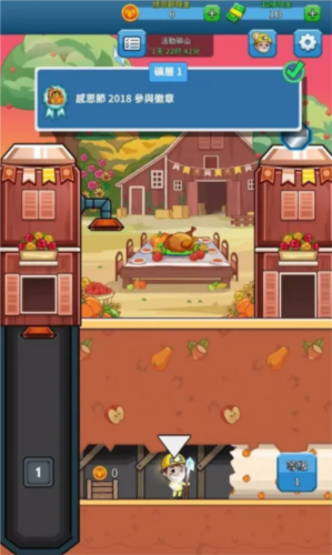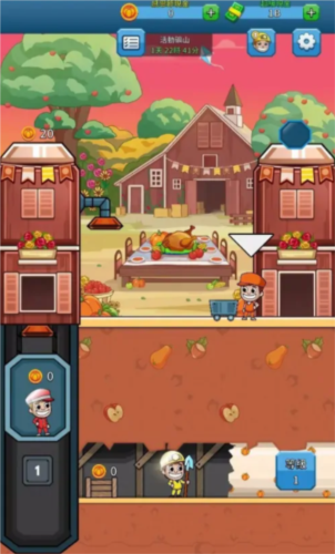 点击升级矿层等级,提升总采掘量、采矿速度与工人能力。