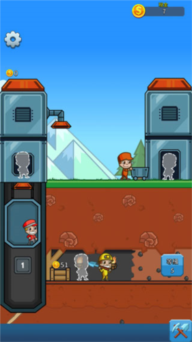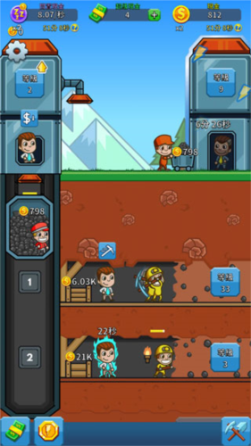 3、达到5级可雇佣矿区、电梯及地面经理,每位初始价格100金币,经理能使工人在玩家离线时继续工作;当首个矿层升至10级,井下将增加一名黄衣矿工,单次采矿收益提升至94金币。