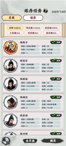 2、招募弟子务必选择双灵根及以上资质,避免因资质过低影响后期成长与存活。
