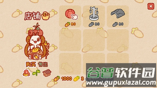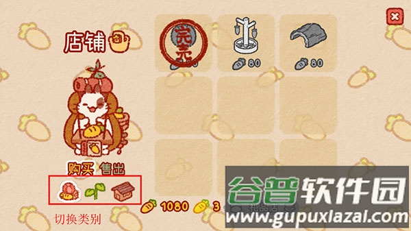1、打开游戏后,点击兔子商人,购买岛上的第一件装饰品;