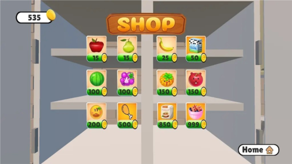 2、前往厨房场景,点击左下角的购买选项,为拉布布的冰箱补充各类食物。