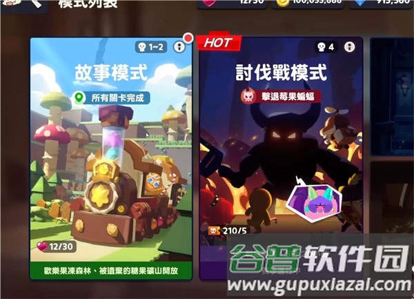 游戏虽以PVE闯关冒险为主,但大厅内设有放置系统(累积上限暂定12小时);通过故事模式特定关卡后,宝库等级将自动提升;等级越高,可获得的奖励越丰富,包括装备素材、饼干强化素材及饼干扭蛋券等多种资源(暂定)。