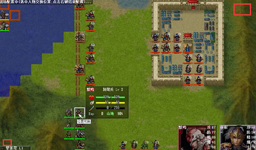 开场剧情后我军获得状态加成。敌军数量众多,建议坚守城门,善用铁堡军的随机状态攻击。击退王黄甲与铁牛后,杨兴与钢斧会率部主动出击。第四回合卓戈带兵出现在左城门位置。
