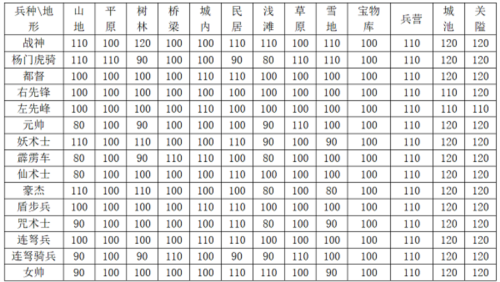 地形适应力指兵种在特定地形上能发挥的属性百分比。