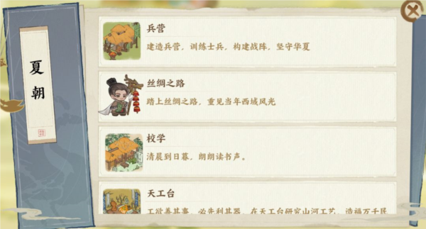 可逐步解锁夏、商、周、秦、汉至元明清各时期,体验各朝专属的建筑生产、贸易往来与科技研发;