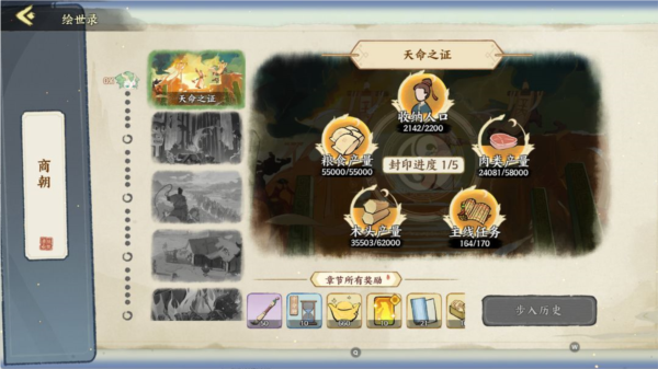 当满足绘世录开启条件后,将进入当前时代的历史叙事,达成结局以证明具备迈向更高级文明的资格,从而完成朝代进阶。