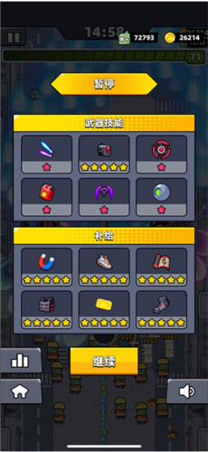 2、进入第四章跑酷关卡,优先选取金币加成、拾取范围与移动速度相关的技能。