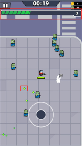 4、拾取地图上掉落的经验道具,积累经验以提升等级。