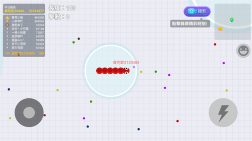 当你的蛇身足够长,可以在地图上包围较小体型的蛇,将其困在身体圈内等待其失误,轻松获得击杀与能量点。