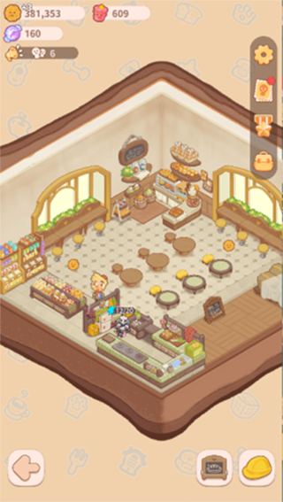 餐厅:设有厨房、用餐区与食品贩卖台,食物库存会随着销售减少,记得及时补货。