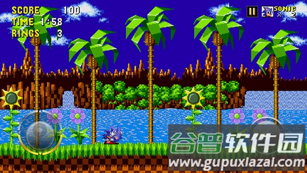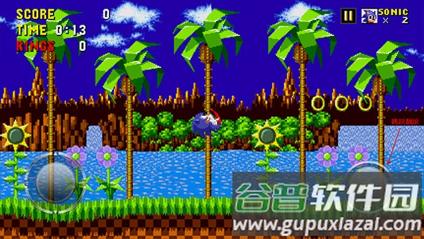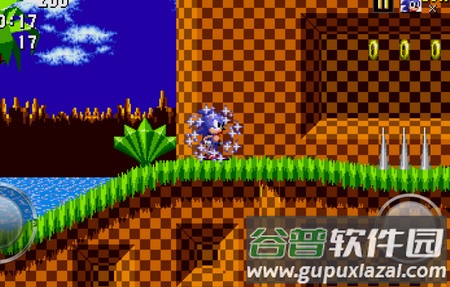 7、右下角按钮用于跳跃,连续点击可使索尼克快速向前翻滚。