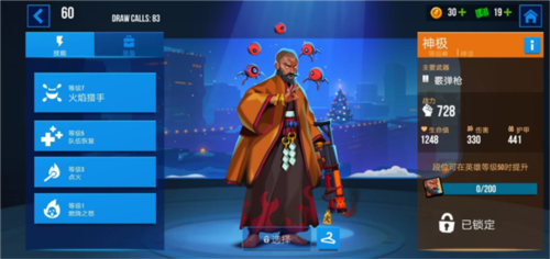 神极英雄是游戏中的强力角色,配备霰弹枪武器,其射击轨迹可生成引燃线攻击敌人。以下是该英雄的技能与属性说明: