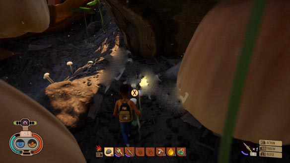 8、降落到下层长有蘑菇的树枝后向右走。