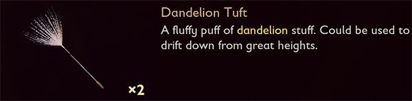 ①从高处坠落时,佩戴蒲公英并按Shift键可缓慢降落且不受伤害。