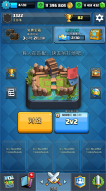 1、安装游戏后无需更新,直接进入主界面,可见金币与钻石数量已大幅修改,玩家可立即参与2v2对战。