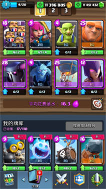 3、进入卡牌界面,游戏内现有卡牌种类达到110种。