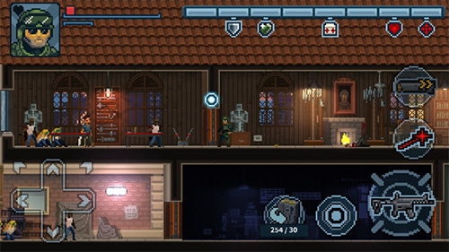 破门而入2行动小队内置修改器版是一款移植自Steam平台的像素风格战术射击游戏,玩家将扮演特警队员执行解救人质、拆除炸弹等任务,游戏提供六名能力各异的角色供选择,每名角色都拥有独特的武器与专属技能,丰富的关卡设计与多人合作模式让游戏体验充满策略性与挑战性。