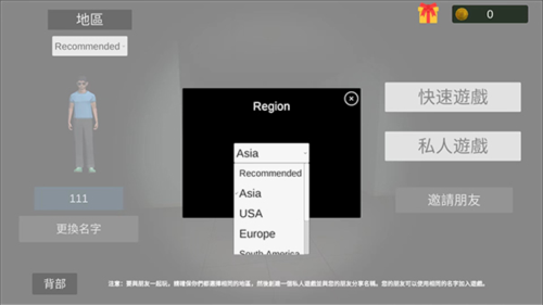 5、然后选择联机区域,例如亚洲、美国或欧洲等服务器;