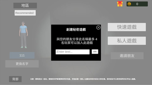 6、创建房间后自定义一个房间名称,将名称告知好友,待他们进入房间即可开始联机冒险。