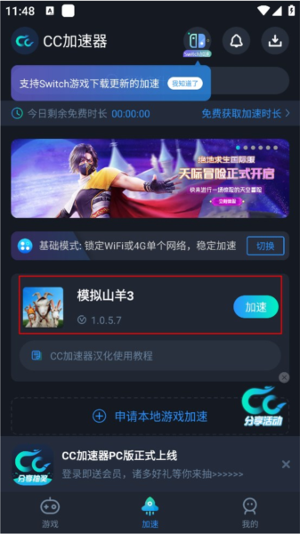 1、从本站下载cc加速器极速版并安装,打开后进入加速界面。