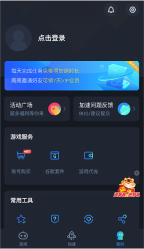 4、在“我的”页面中,可以找到游戏服务与常用工具等选项。