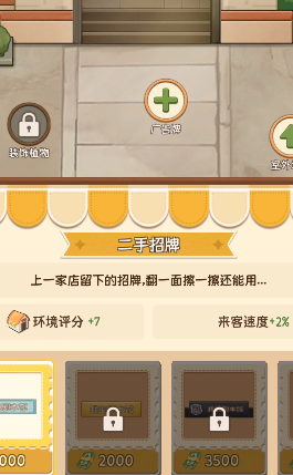 丰富家具装饰让店面更具个性,逐步完善场景配置增添经营趣味;
