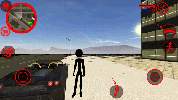 3、当火柴人靠近车辆时,右侧会自动浮现汽车图标,此按键用于帮助角色登上车辆。