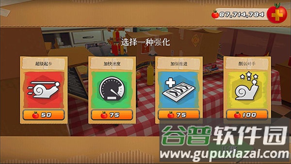 4、道具系统:提供加速板、快速通道等多种道具;还能用番茄购买强化buff,提升蜗牛能力。