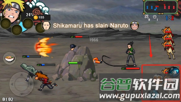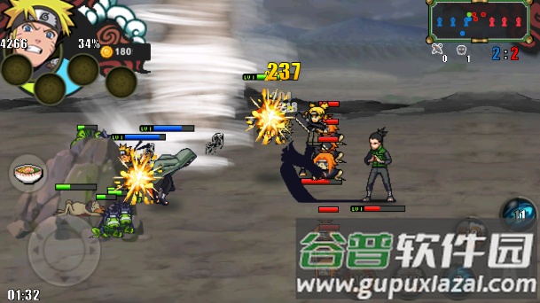 角色选择:游戏提供众多火影忍者角色,例如佩恩、小南、鸣人、小樱等。