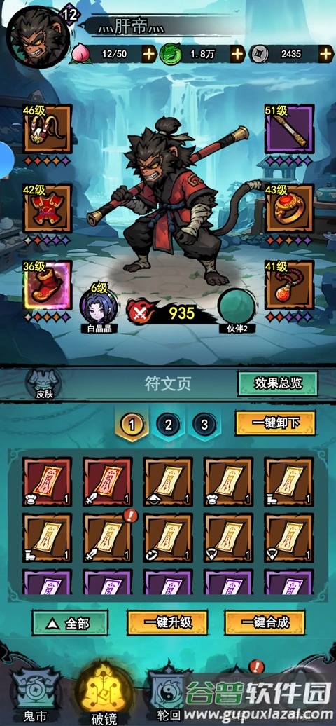4、弓箭手关卡补完火眼后,推荐搭配画魂、火拳、多重飞棍,清理边缘小怪为火眼创造输出环境;撑过第一波后压力会减小;