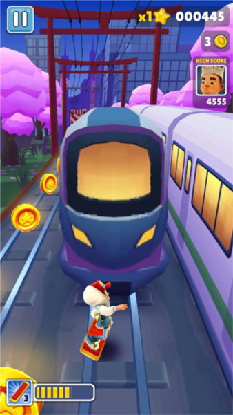 4、火车接力:常见场景为左右无碍,中路连续驶来多列火车。为收集全部金币可使用基础组合跳滚,操作需稳健。若持有磁铁,普通跳跃即可,磁铁会自动吸附附近金币。