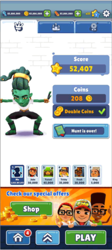 道具能辅助得分并保障安全,其中双倍金币道具尤为实用。获取后短时间内金币收集翻倍,同时得分倍率也会增长,是冲击高分的利器。