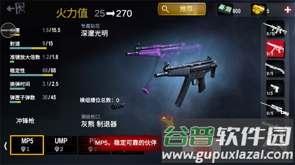 2、进入枪械页面,点击右下角的升级按钮即可完成强化。