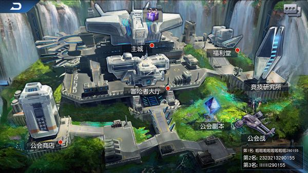 1、公会场景内设有主城、福利堂、商店、冒险者大厅、竞技研究所、副本及公会战六大建筑。