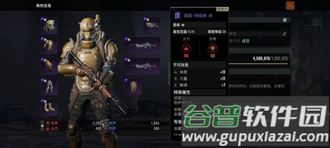 装备是重头戏;根据主玩流派选择,例如机枪流以力量为主属性,词条优先选择力量与火力加成。