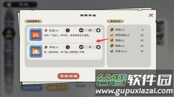 接下来配置兵法,兵法能显著影响战局走向。