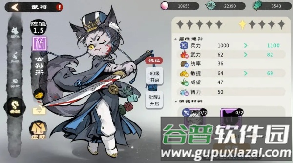武将拥有五种可提升属性,每种上限20点,总计最多提升80次,需要合理分配点数。