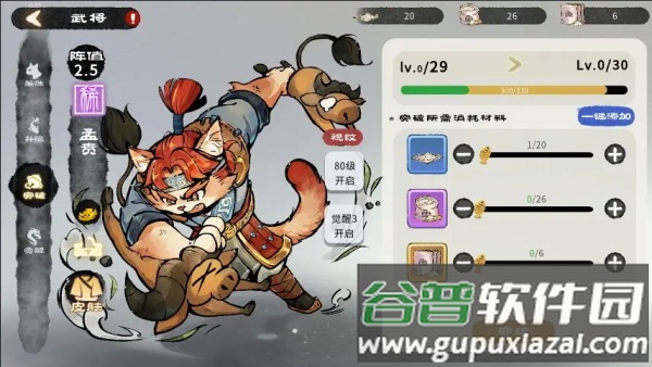 若想提高等级上限,需在武将界面的突破区域进行操作。