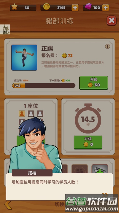 功夫学院是一款模拟经营游戏,玩家将扮演一所武术学校的经营者,通过规划课程、招募学员、升级设施来培养功夫高手。游戏采用放置点击的玩法,操作简便,同时提供了丰富的管理元素和内置功能菜单,让玩家能够逐步扩展自己的学院规模。