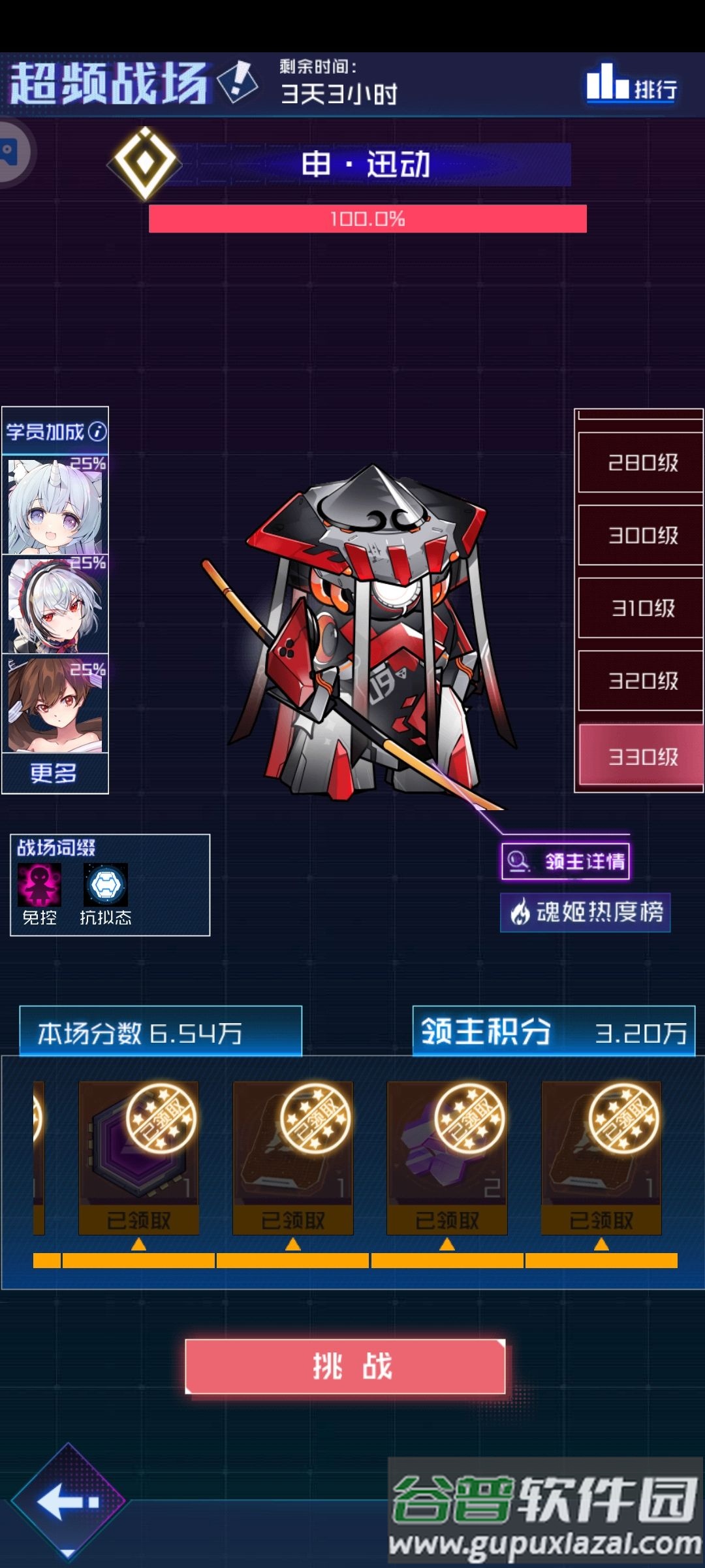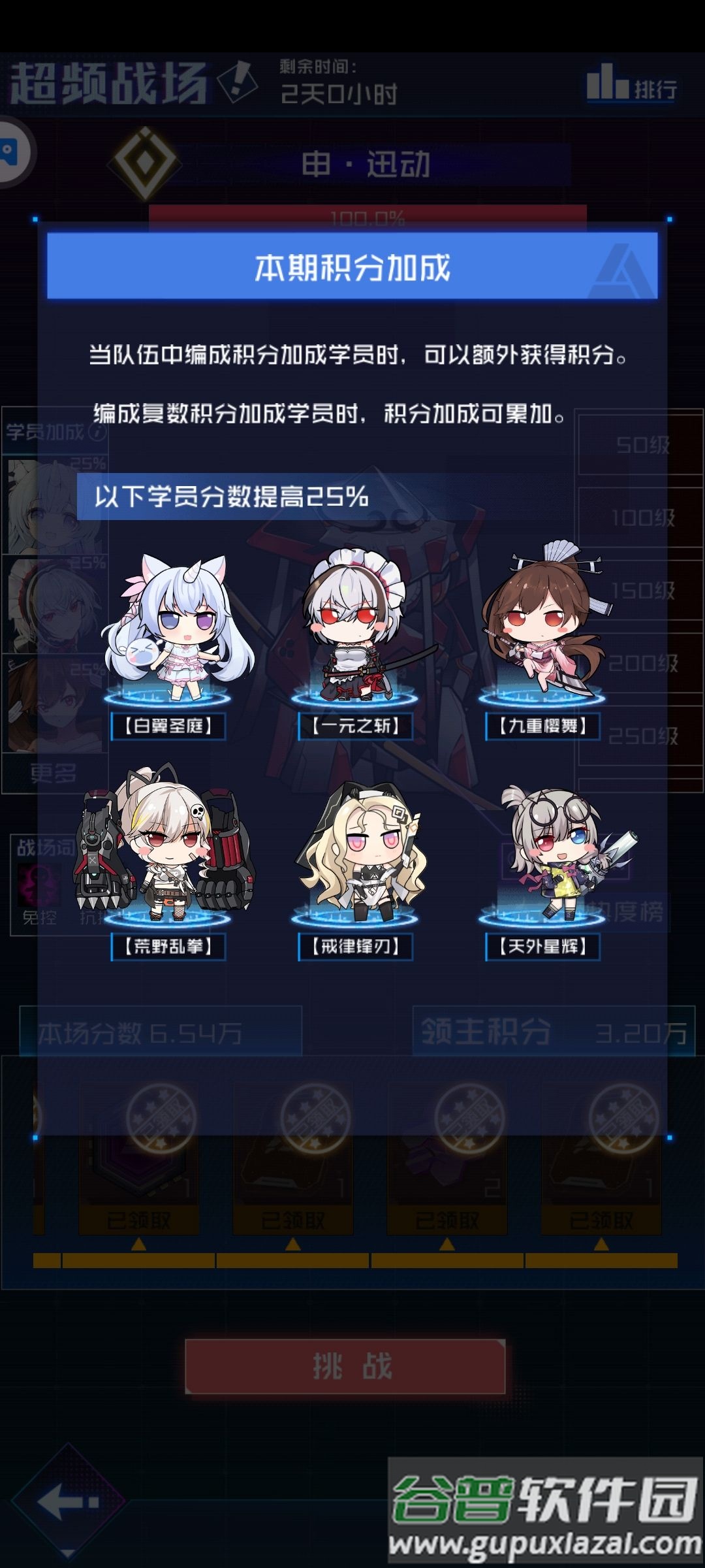超频战场对角色数量与练度有要求;建议从最高难度boss开始尝试,若主力无法存活则降低难度,直至主力无生存压力。